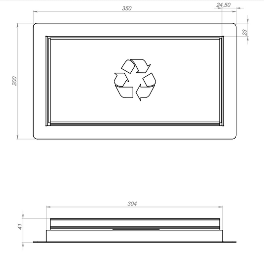 Šiukšlių durelės 350x200 mm | Juodos su baltu perdirbimo simboliu